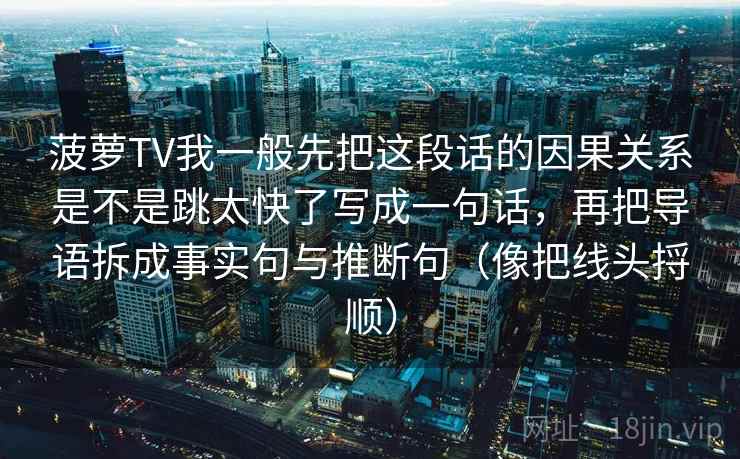 “菠萝TV我一般先把这段话的因果关系是不是跳太快了”—— 这句话,其实道出了许多人在信息接收过程中遇到的普遍痛点。我们渴望的是清晰、流畅的逻辑链条,而不是跳跃式的叙述,让我们在追赶信息的过程中疲惫不堪。
